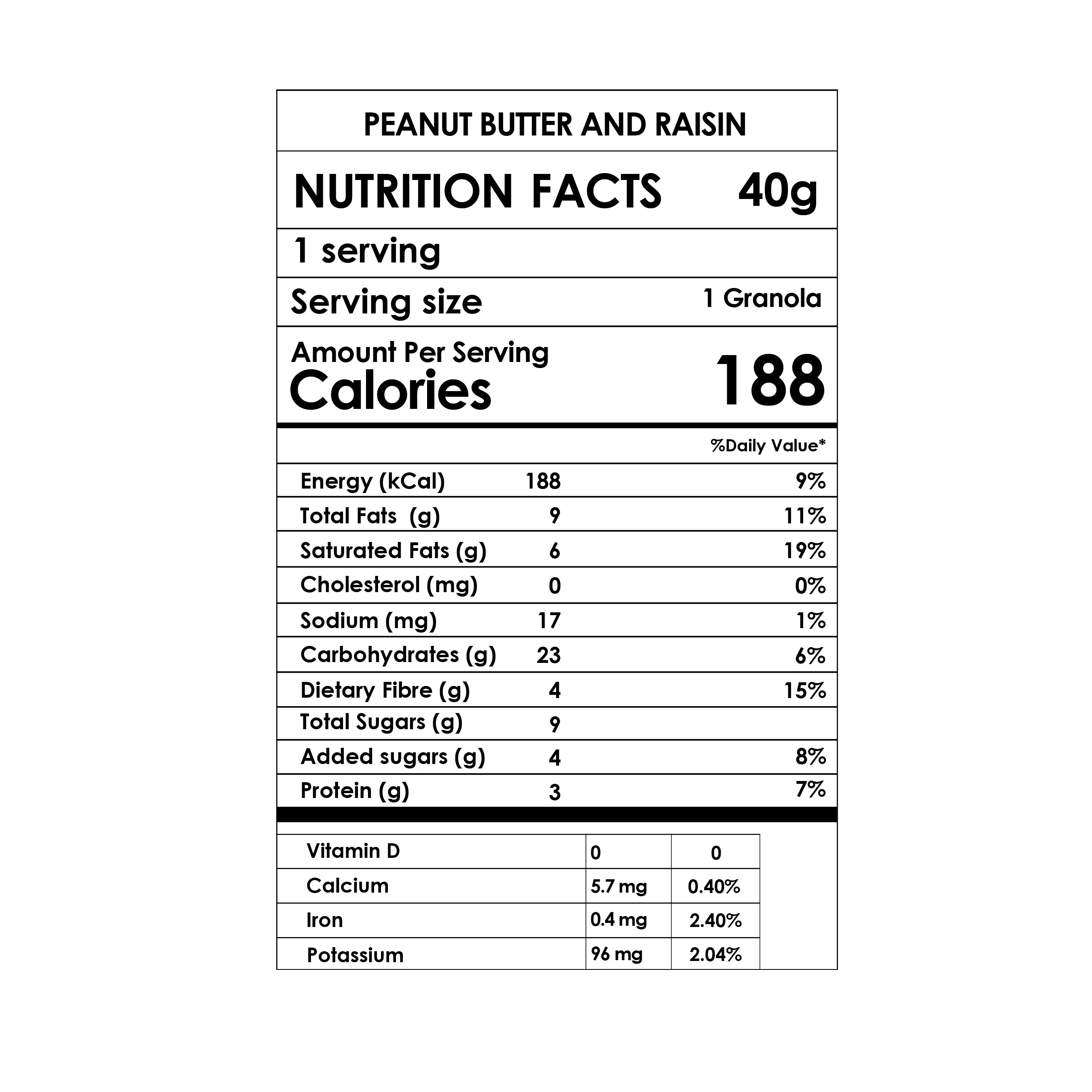 PEANUT BUTTER & RAISIN GRANOLA BAR 40g X 6 BARS